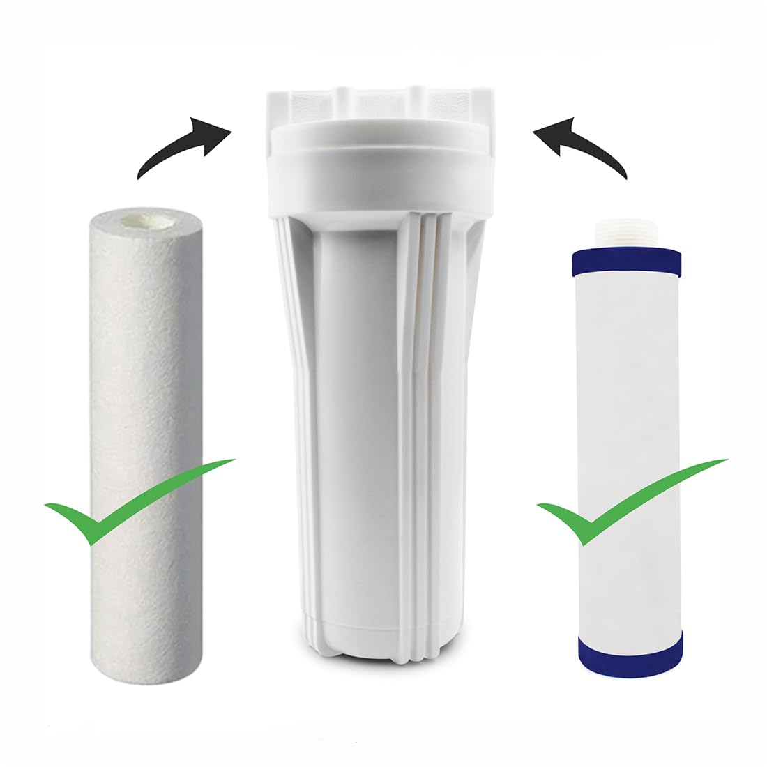 - Perlindungan: Housing melindungi cartridge dari kerusakan fisik dan, untuk model yang berwarna biru, membantu mencegah pertumbuhan lumut atau alga dengan menghalangi paparan sinar matahari langsung.