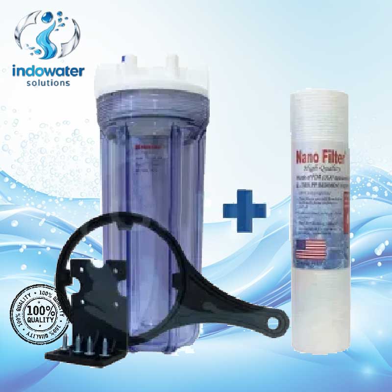 Housing Filter 10 Inch dengan Spun Cartridge Nano Filter High Quality berfungsi sebagai sistem penyaringan awal (pre-filter) yang efektif untuk menghilangkan berbagai kontaminan fisik dari air, menghasilkan air yang lebih bersih dan jernih untuk keperluan rumah tangga atau industri kecil.